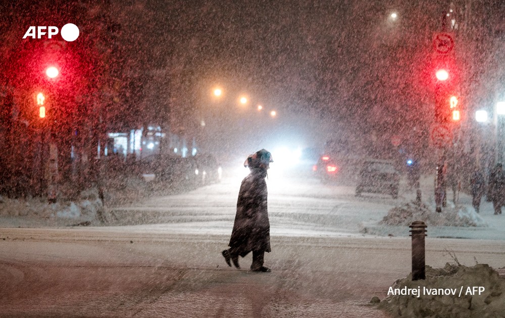 People cross a street in the Mile End, a borough in Montreal, Quebec, Canada, as the snow comes down on December 22, 2022. A "once-in-a-generation" winter storm with temperatures as low as -40 degrees Fahrenheit caused Christmas travel chaos in the United States on Thursday, with thousands of flights cancelled and major highways closed.