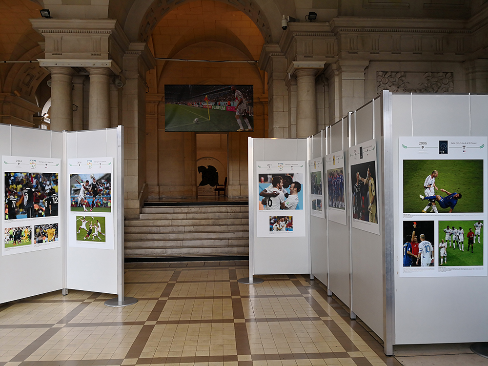 Derrière le foot, l’évolution de la photo et du savoir-faire de l’AFP sont au cœur de cette exposition. Au fil des compétitions, les images se transforment. Des nouveaux emplacements réservés aux photographes s’ouvrent au bord du terrain, dans les gradins et depuis peu sur les toits des stades. Simultanément les évolutions technologiques enterrent la chambre photographique au profit des appareils numériques haute définition dotés de très longs téléobjectifs. On place des robots derrière les buts. On ne veut rien rater. Le foot à l’AFP, c’est l’histoire d’une passion. C’est aussi l’histoire d’une compétence.