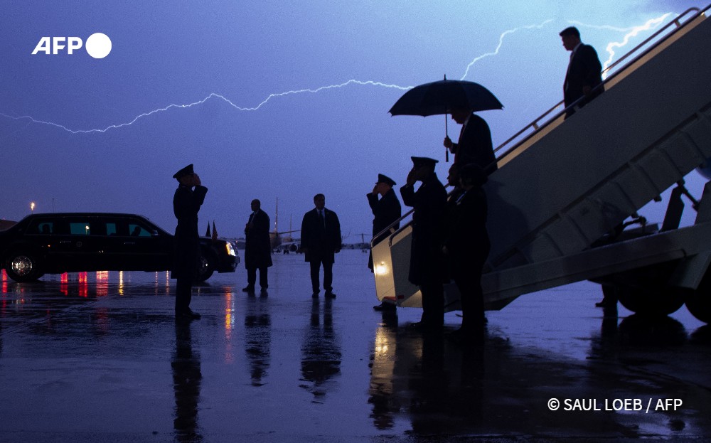 Basé à Washington pour couvrir la Maison Blanche, la politique américaine et les principales actualités nationales et internationales en tant que photographe de l’AFP, Saul Loeb remporte la deuxième place du POYi 2020 dans la catégorie « Impact 2020: Election Season » pour sa photo intitulée « Lightning in Chief » de l'impact de foudre au moment où le président américain Donald Trump descend de l’avion présidentiel Air Force One.