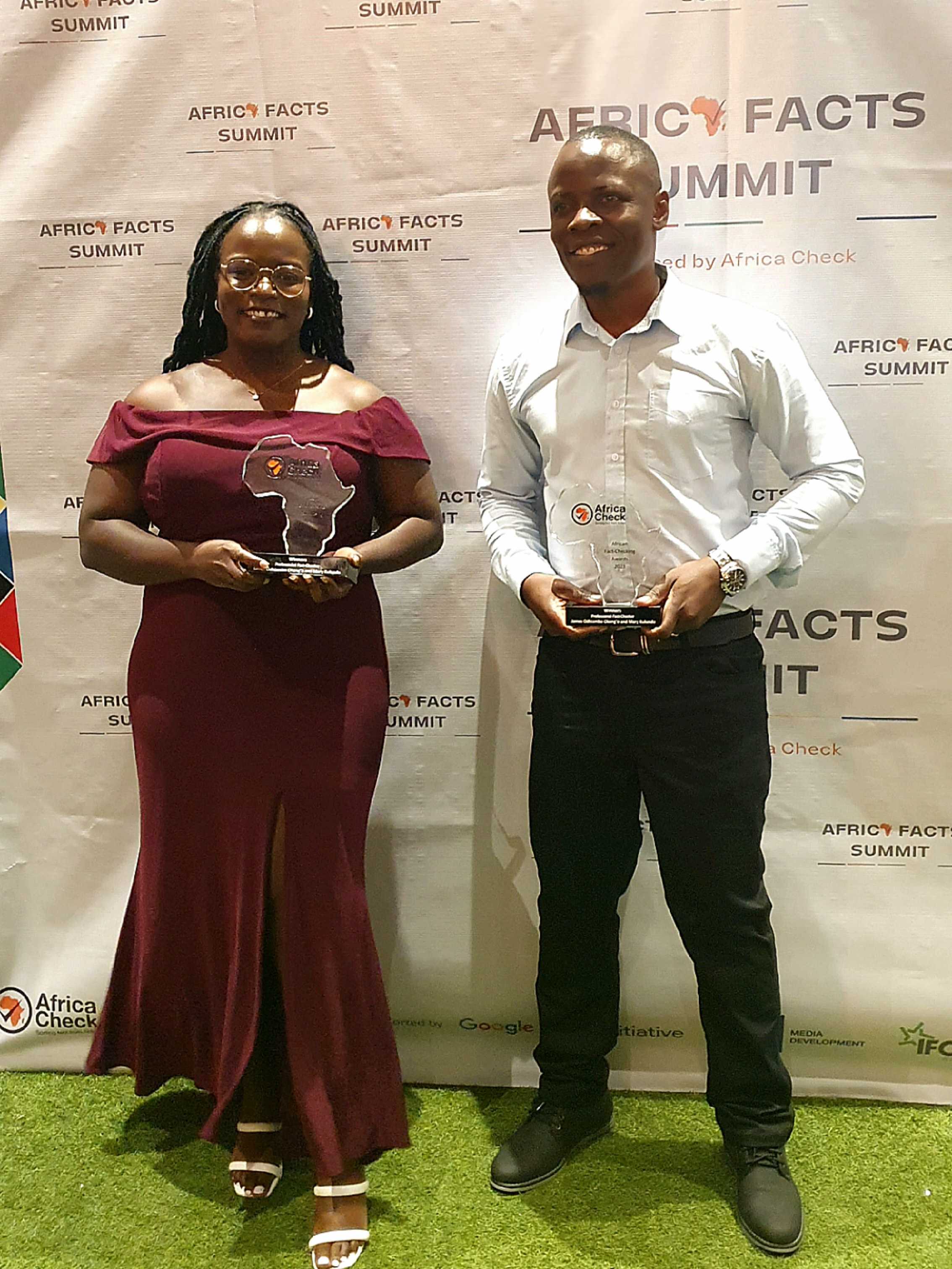 AFP digital investigation reporters Mary Kulundu and James Okong’o won the coveted “Fact-Check of the Year” award at the Africa Facts Summit, held in Mauritius on October 5-6.