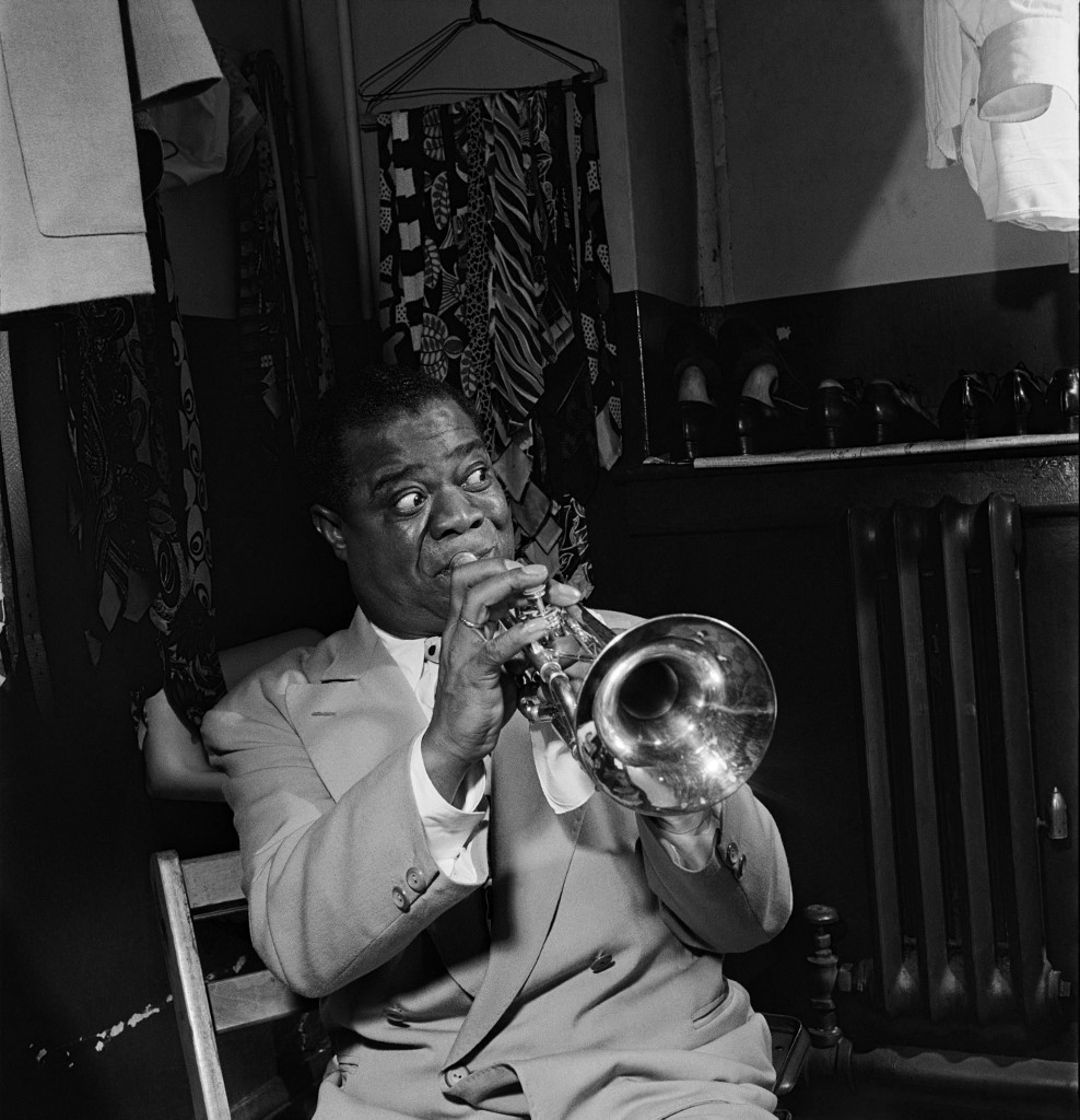 Des théâtres de Harlem aux clubs de jazz de Broadway, Eric Schwab était proche du monde des arts et de la nuit. Parmi les plus grandes personnalités rencontrées, le trompettiste Louis Armstrong qu’il photographia souvent.