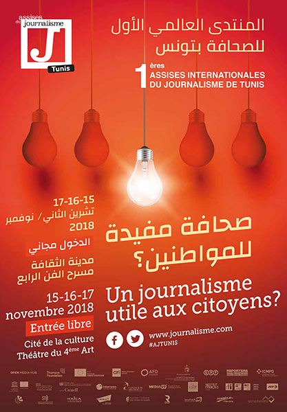 Pendant trois jours, Tunis sera la capitale du Journalisme ! 500 journalistes venus de 30 pays vont se rassembler à la Cité de la Culture et au théâtre du 4ème Art pour débattre avec les citoyens de l’information dont nous avons besoin pour faire vivre notre démocratie.